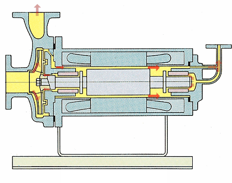 N型逆循環型的參數: 流量:高達600m3/h 揚程:高達249m 功率:高達200kW 用途描述:適用于易汽化液體,泵體直接裝在電機法蘭上。在此型屏蔽泵中,對軸承潤滑、冷卻和對電機冷卻的液體流動方向與基本型正好相反。其主要特點是不易產生汽蝕,特別適用于易汽化液的輸送,如液化石油氣、一氯甲烷等。 采用此屏蔽泵,完全無泄漏,有效地避免了環境污染和物料損失,只要選型正確,操作條件沒有異常變化,在正常運行情況下,幾乎沒有什么維修工作量。