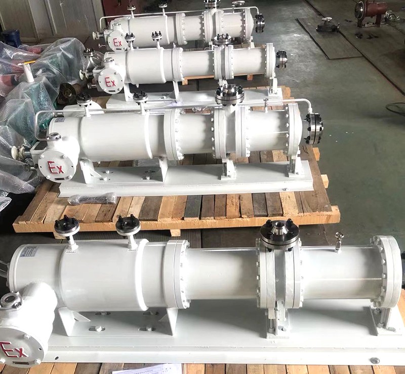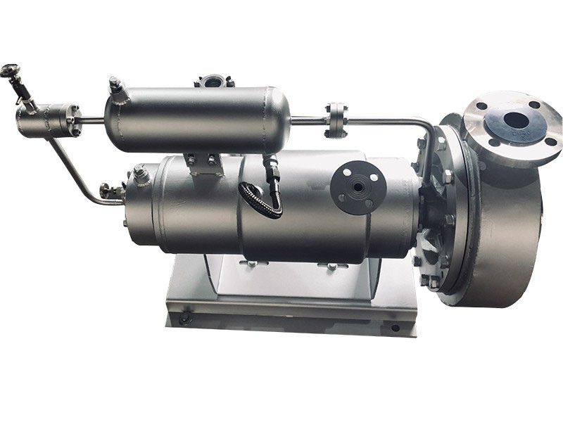 屏蔽泵是用同一根軸將電機的轉(zhuǎn)子和離心泵的葉輪固定在一起,然后用屏蔽套將這一組轉(zhuǎn)子屏蔽住。而電機的定子圍繞在屏蔽套的四周,屏蔽套是由金屬制成的,因此動力可以通過磁力場傳遞給轉(zhuǎn)子。而整個轉(zhuǎn)子都在被泵送液體中運轉(zhuǎn)。屏蔽的端部靠法蘭或焊接的結(jié)構(gòu)實現(xiàn)靜密封。屏蔽套實際上是一個壓力容器。定子的內(nèi)表面和轉(zhuǎn)子的外表面裝有耐腐蝕金屬薄板制造的定子屏蔽套和轉(zhuǎn)子屏蔽套。各自端面用耐腐蝕金屬薄板與它們焊接,與被輸送液體分隔,使定子繞組鐵芯和轉(zhuǎn)子鐵芯不受浸蝕。除了屏蔽套之外,還有一個部件是循環(huán)管,利用泵送液體對軸承潤滑與冷卻,有時也對電機冷卻。屏蔽泵的軸向力平衡方式,通常采用自動推力平衡裝置,有時也選用葉輪背面裝有徑向葉片,即背葉輪推力平衡機構(gòu)。